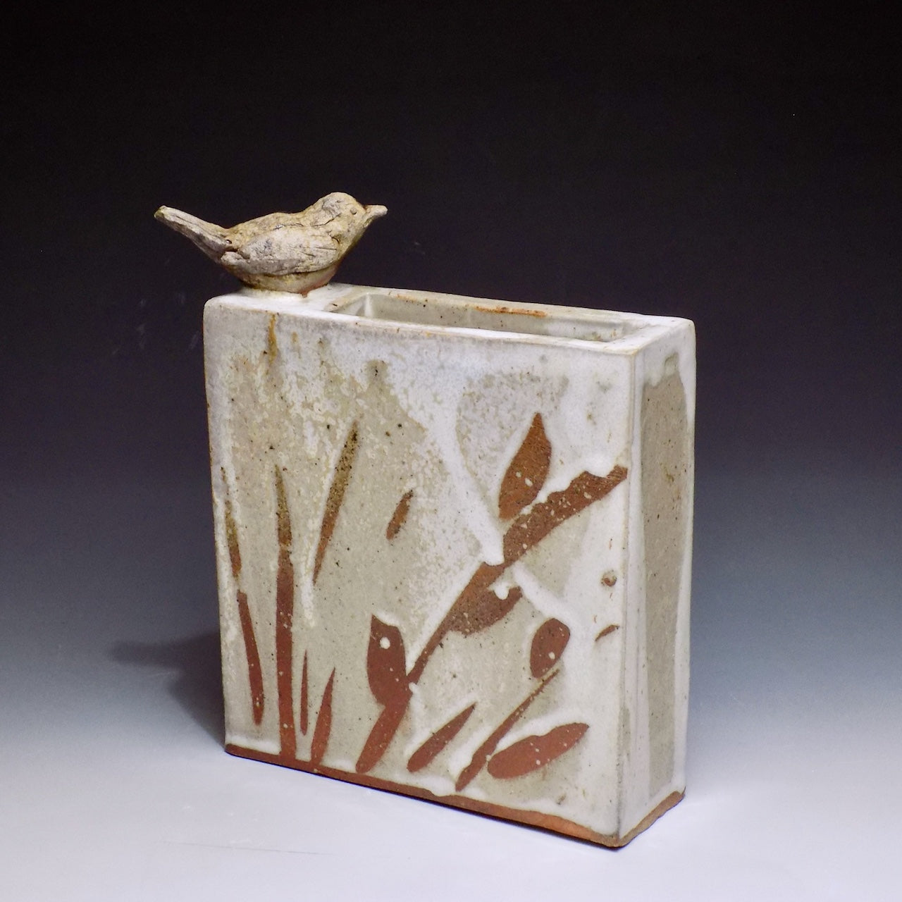 Nuka glaze, wax resist brushwork, natural ash and flashing from wood firing